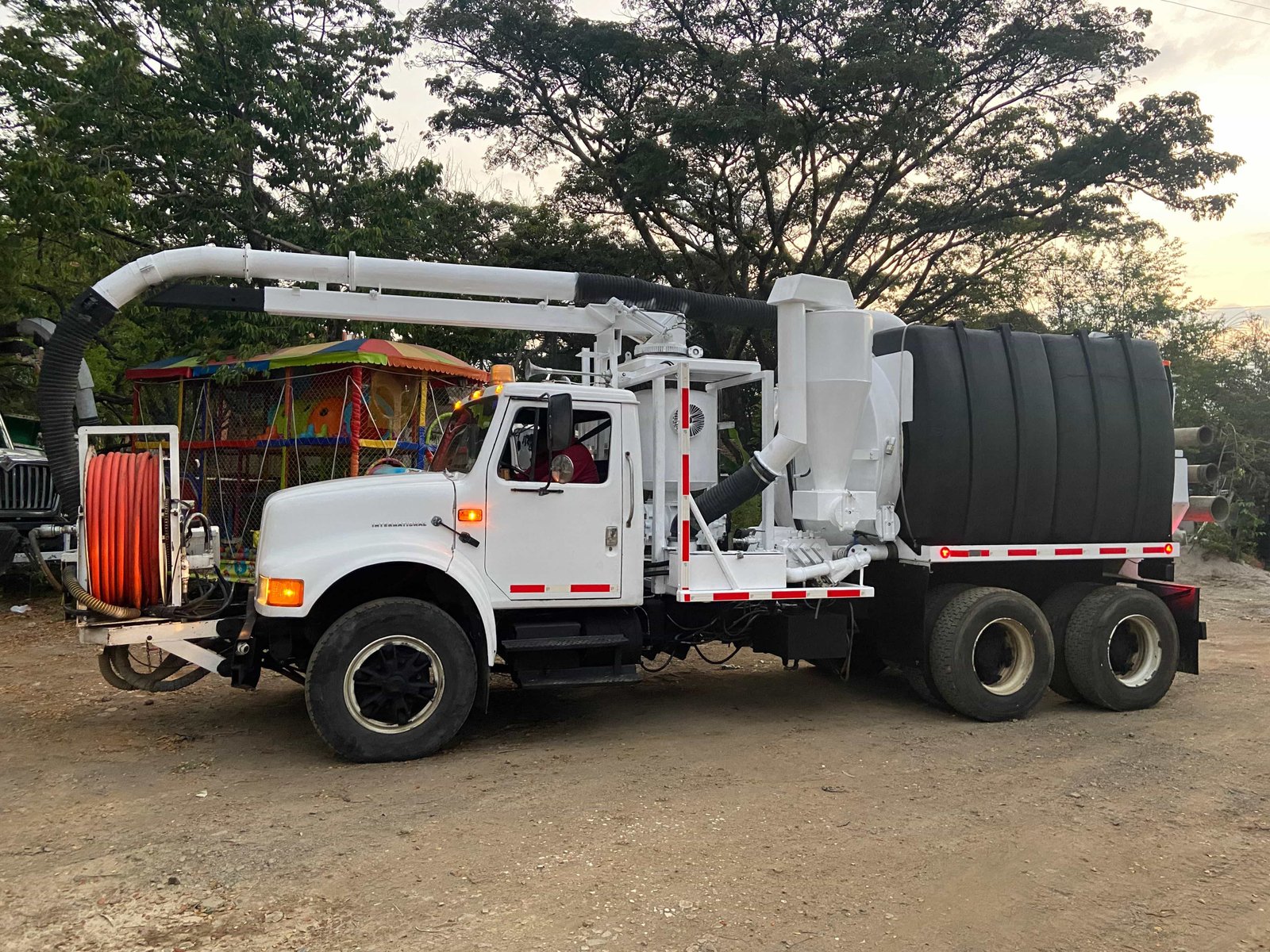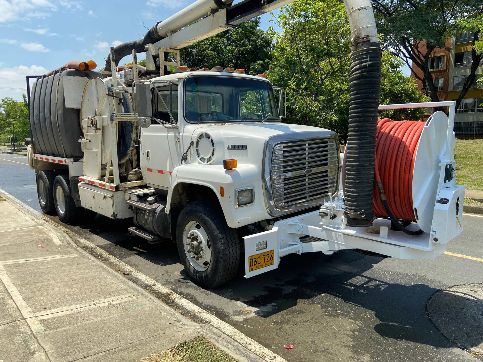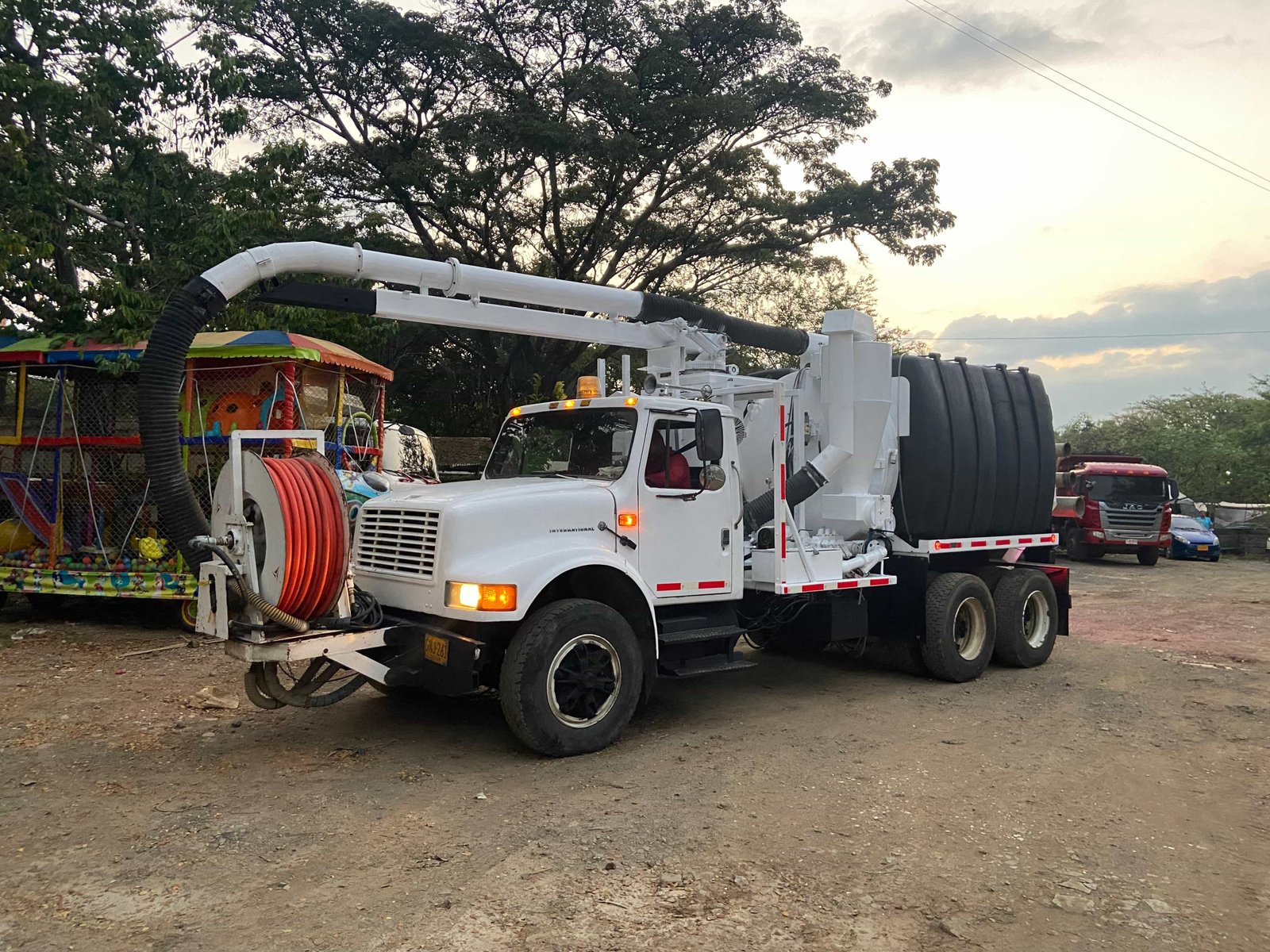 Equipo combinado de presión-succión desazolve, cuenta con bombas de alta potencia para succión de lodos, pozos sépticos, trampas de grasa y lavado con agua de alta presión para destaponamiento y mantenimiento en tuberías de redes sanitarias y pluviales.